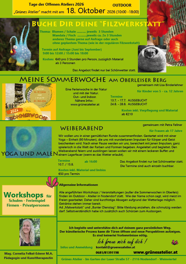 Grünes Atelier Im Mittelpunkt steht die Freude am Tun Gemeindenachrichten Niederleis Dezember 2025 Tage der OFFENEN ATELIERS 2025